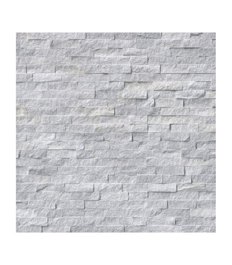 Alaskan Gray Splitface Interlocking Wall Tile features subtle dove gray and white tones in genuine marble pieces of varied lengths. These mosaic hatches offer a dimensional look that adds interest and luxury to any vertical space, indoors or outdoors. In on-trend neutral hues, Alaskan Gray coordinates beautifully with other natural marble tile and stone products in MSI's inventory. Use this stunning natural backsplash tile to create accent walls, kitchen backsplash, fireplace surrounds, and other architectural features.